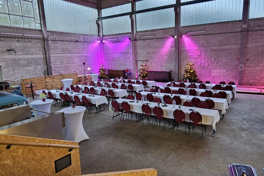 Die Werkstatt ist für eine Gesamtnutzung des Ensembles in der Regel der Raum in dem die Nach durchgetanzt wird. Besonders geeignet ist er jedoch auch als VIP-Bereich. So lässt sich der unmittelbar aus der Werkstatt zugängliche Außenbereich und ein separater Barausschank mit wenigen Handgriffen (auch uneinsehbar) von den sonstigen Bereichen abtrennen, während der Zugang zu den sanitären Anlagen eigenständig erhalten bleibt. Sie erhalten So also einen vollständig separierten Bereich innen und außen, den Sie ganz unabhängig bespielen können.