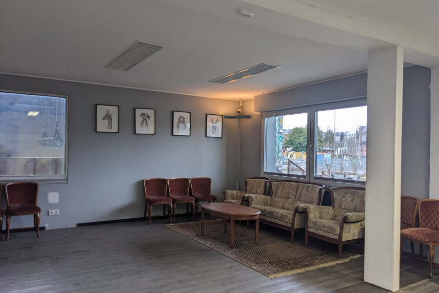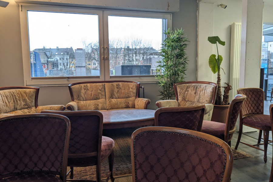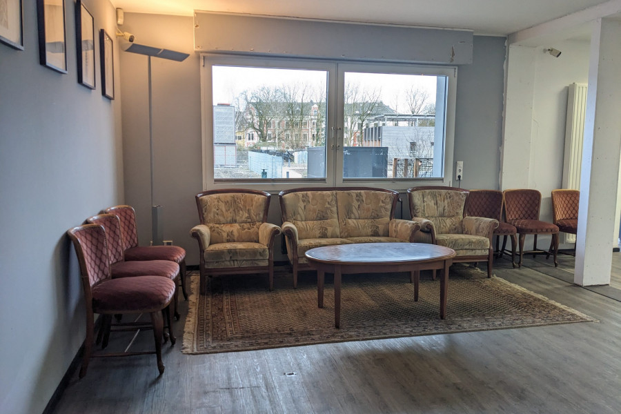 Meisterlich könne Sie sich nun auch fühlen. Einst wurde das Meisterbüro mit seinen vielen Fenstern zur Kranhalle und zum Außenbereich errichtet, damit der Meister über die korrekte Ausübung des Glaserhandwerks und das Geschehen vor der Glaserei wachen konnte. Beim Umbau wurde auch der ehemalige Empfang und Wintergarten an das Meisterbüro angeschlossen und mit einem direkten Zugang zur Meisterterrasse und zur Kranhalle versehen. In besonderer Weise versinnbildlicht nun das Meisterbüro die Verbindung von außen und innen, vom Geschehen in der Nordstadt und demjenigen in der Glaserei.